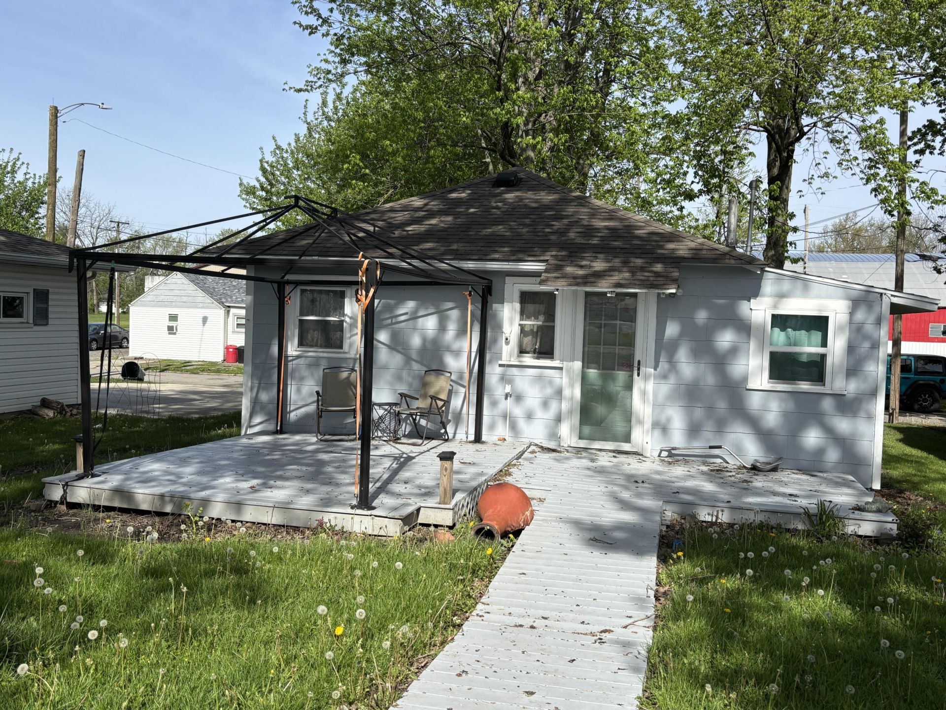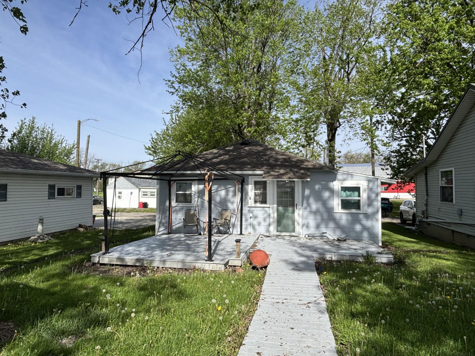 Dont miss out on this cute two bedroom, one bath home/cottage in Russells Point. Situated close to shopping, dining, churches and more. Golf cart friendly community so you can get where youre going by golf cart! Nice back yard with great deck area. Open living room/kitchen area. Must see!!